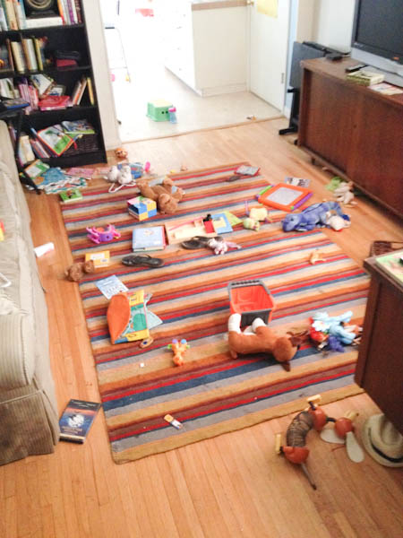 It will look like this until she returns next week … or Caleb gets so fed up he makes the girls clean up their mess. I’ll just continue to step over everything. That DVD will probably still be on the floor when my husband gets home tonight. Or it’ll get kicked under the couch, and we won’t find it for a few months … Honestly, I don’t really mind the mess. My kids don’t either, or they’d be keeping it clean, right? So, at least everyone’s happy.